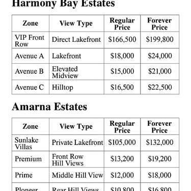 Harmony Bay – Tiered Pricing (Per Plot)