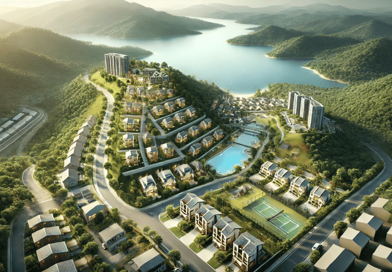 New Las Vegas Harmony Bay is a premier 50-acre lakefront community within New Las Vegas, rising from the shores of Volta Lake to panoramic mountaintop views. Designed for luxury living and relaxation, it features villas, resort lounges, lake bars, and direct access to nature — blending tranquility with timeless investment value.
