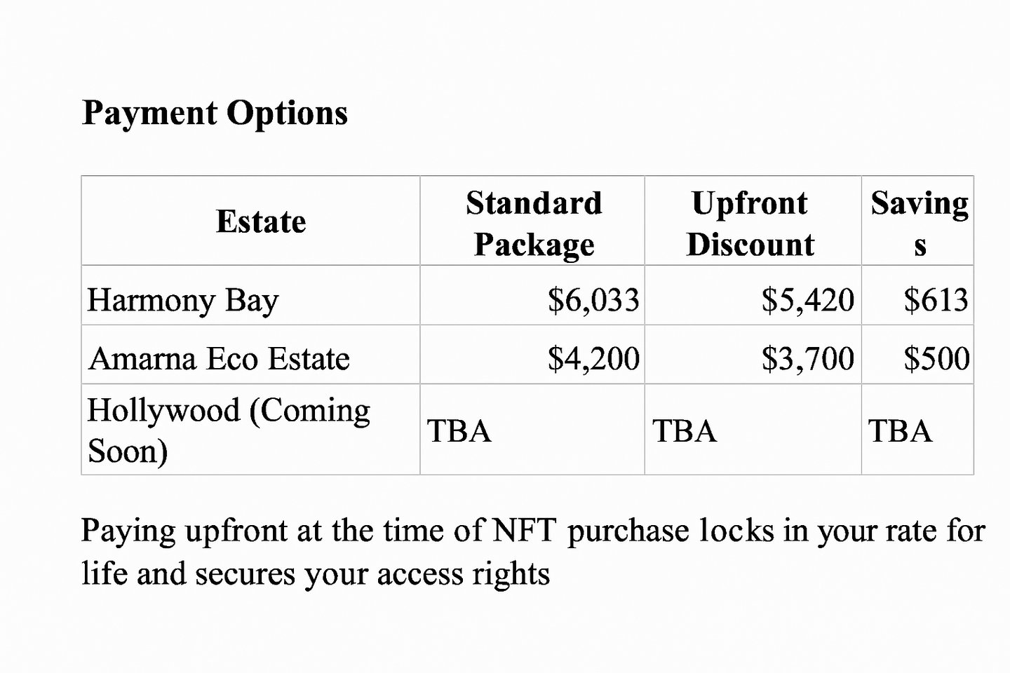 After year 10, estate maintenance transitions to the New Las Vegas DAO (NLVGH Council). No changes to fees or services can be made without a community vote. This ensures fairness, transparency, and long-term peace of mind.
